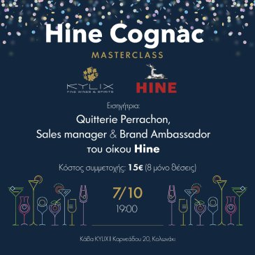Η κάβα Kylix και το kylix.gr με χαρά υποδέχονται την Quitterie Perrachon, Sales manager & Brand Ambassador του οίκου Hine και διοργανώνουν μία μοναδική γευσιγνωσία με τα αγαπημένα Cognac Hine.