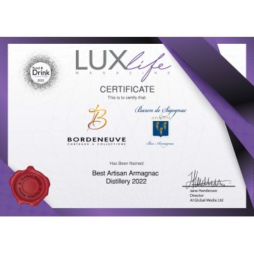 Το διεθνούς φήμης βρετανικό περιοδικό Lux Life Magazine ανέδειξε το Chateau de Bordeneuve και Baron de Sigognac ως το καλύτερο Artisan αποστακτήριο Armagnac για το 2022 στην κατηγορία Food &...