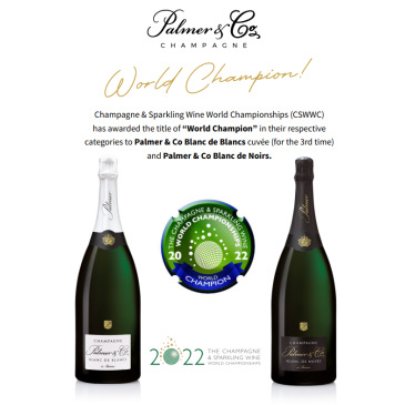 Ο οίκος Champagne Palmer έλαβε δύο από τις πιο σημαντικές διακρίσεις στο φετινό Champagne & Sparkling Wine World Championships.      Το CSWWC είναι ο πιο σεβαστός και αυστηρός διεθνής δια...